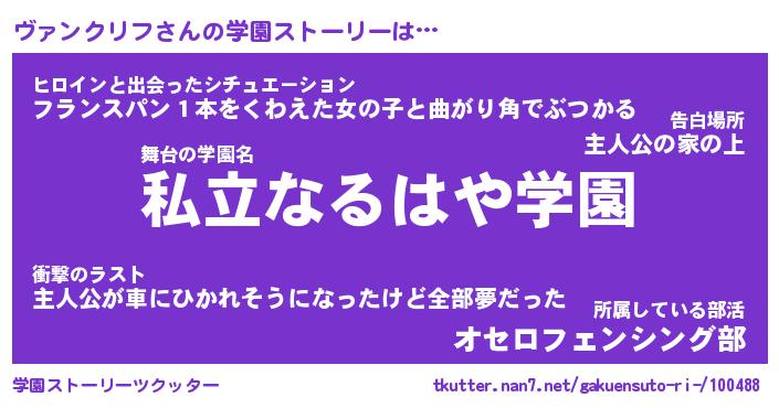 | 男性向けラノベタイトル風あだ名 | 『ヴァンクリフの憂鬱』 |