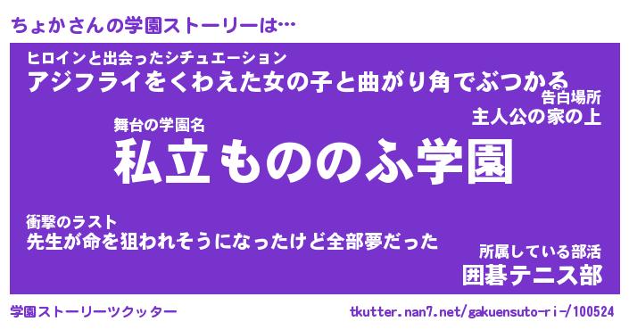 | 告白場所 先生の家の上 …「ふぃぎゅこ」 | 2月17日 06:24 |