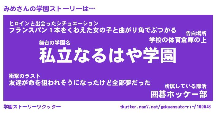 | 告白場所 先生の家の上 …「ふぃぎゅこ」 | 2月17日 06:24 |