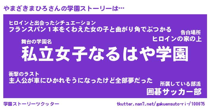 | 伝説のあだ名 | 『封印されしスナイパーやまざきまひろ』 |