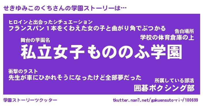 | 男性向けラノベタイトル風あだ名 | 『セキユミコノクチアートオンライン』 |