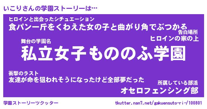 | 女子向けラノベタイトル風あだ名 | 『いこり姫と円卓の騎士』 |