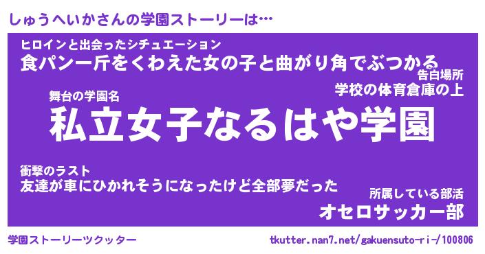 | ヒーロー風カッコイイあだ名 | 『スーパーシュウヘイカ』『炎刃騎士シュ』 |