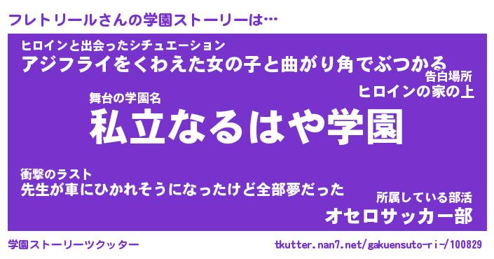 | 男性向けラノベタイトル風あだ名 | 『フレトリールの憂鬱』 |