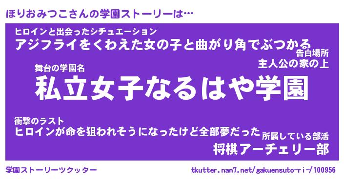 | 女子向けラノベタイトル風あだ名 | 『ほりおみつこ姫と円卓の騎士』 |