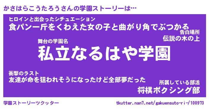 | 肩書あだ名 | 『かさはらこうたろう御曹司』 |