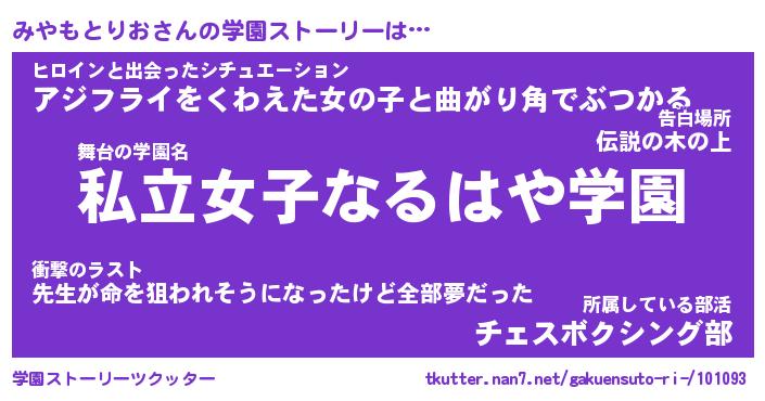 | 肩書あだ名 | 『みやもとりお店長』『みやもとりお班長』 |