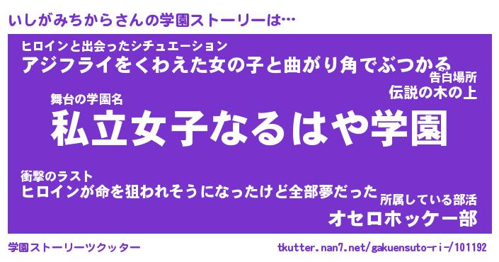 | 女子向けラノベタイトル風あだ名 | 『いしがみちから姫と円卓の騎士』 |