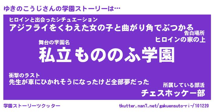 | 胡散臭い通販商品みたいなあだ名 | 『必ず成功するブレスレット…その名も「ゆきのこうじ」』 |