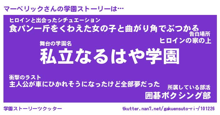 | 男性向けラノベタイトル風あだ名 | 『マーベリックの憂鬱』 |