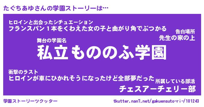 | 告白場所 先生の家の上 …「ふぃぎゅこ」 | 2月17日 06:24 |