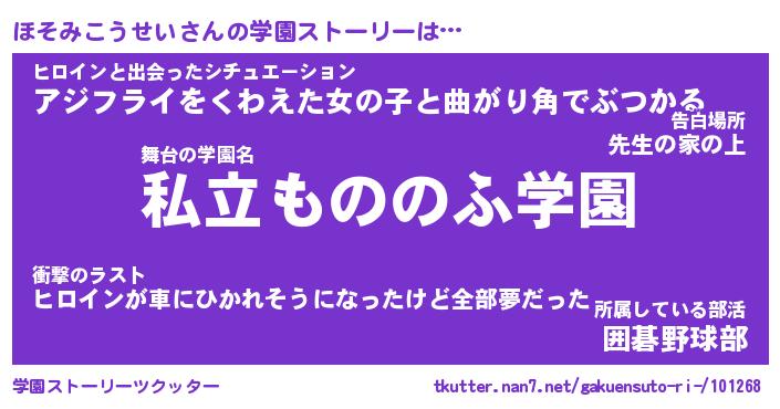 | 告白場所 先生の家の上 …「ふぃぎゅこ」 | 2月17日 06:24 |
