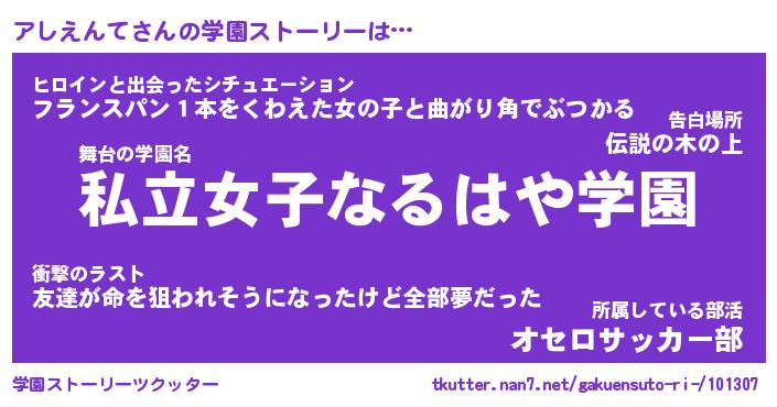 | 告白場所 先生の家の上 …「ふぃぎゅこ」 | 2月17日 06:24 |