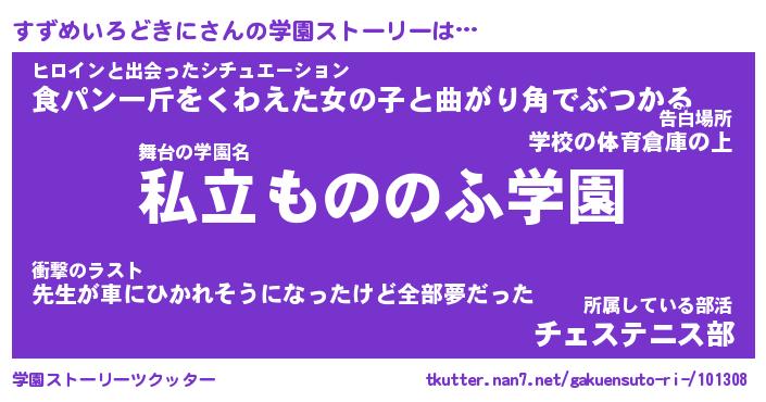 | 胡散臭い通販商品みたいなあだ名 | 『必ず成功する水晶球…その名も「すずめいろどきに」』 |