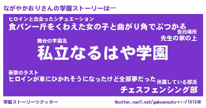 | 女子向けラノベタイトル風あだ名 | 『(仮)ながやかおりのやんごとなき事情』 |