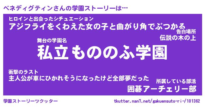 | 男性向けラノベタイトル風あだ名 | 『ベネディグティンの憂鬱』 |