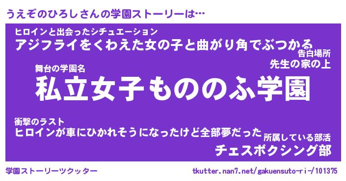 | 女子向けラノベタイトル風あだ名 | 『誰かこのうえぞのひろしを説明してください! ~契約から始まるウェディング~』 |