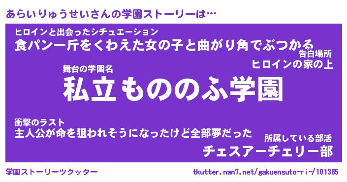 | 男性向けラノベタイトル風あだ名 | 『あらいりゅうせいの憂鬱』 |