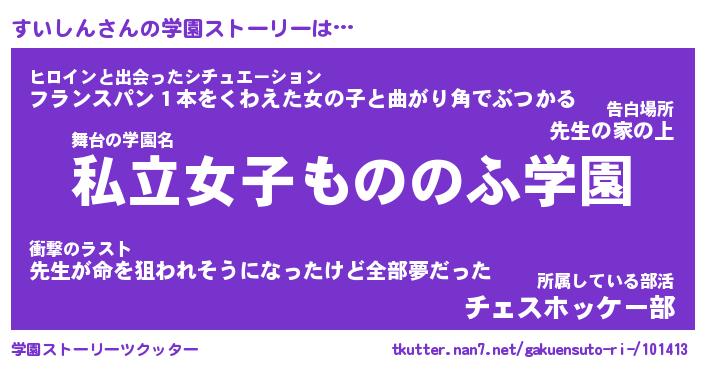 | 告白場所 先生の家の上 …「ふぃぎゅこ」 | 2月17日 06:24 |