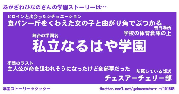 | 男性向けラノベタイトル風あだ名 | 『あかざわひなのの憂鬱』 |