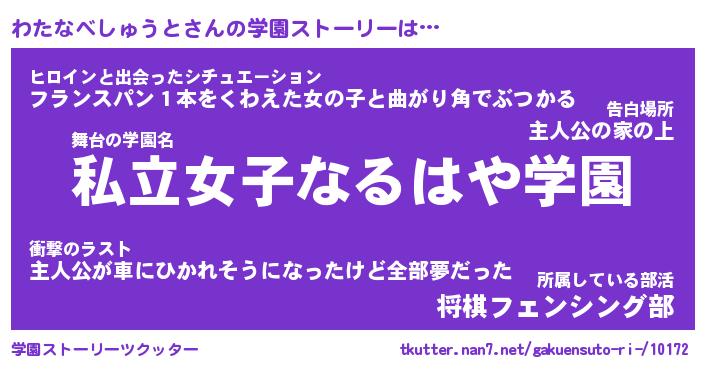 | 女子向けラノベタイトル風あだ名 | 『誰かこのわたなべしゅうとを説明してください! ~契約から始まるウェディング~』 |
