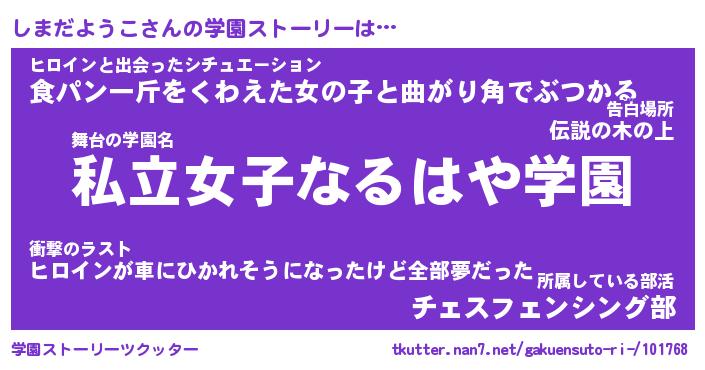 | 女子向けラノベタイトル風あだ名 | 『しまだようこ姫と円卓の騎士』 |