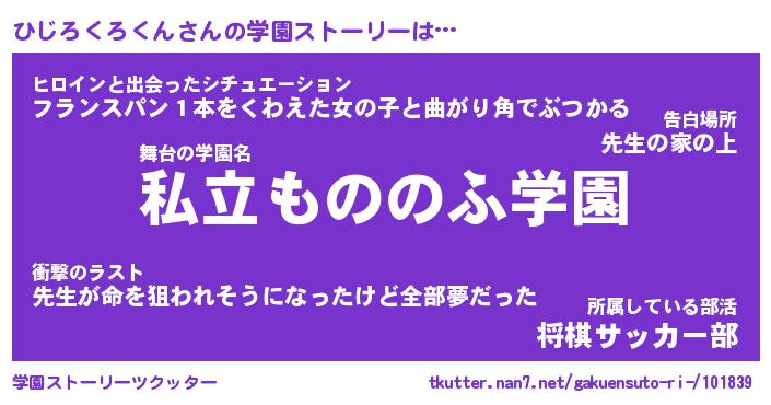 | 男性向けラノベタイトル風あだ名 | 『ひじろくろくんの憂鬱』 |