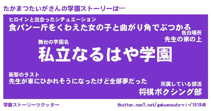 | 伝説のあだ名 | 『伝説のスナイパーたかまつたいが』 |