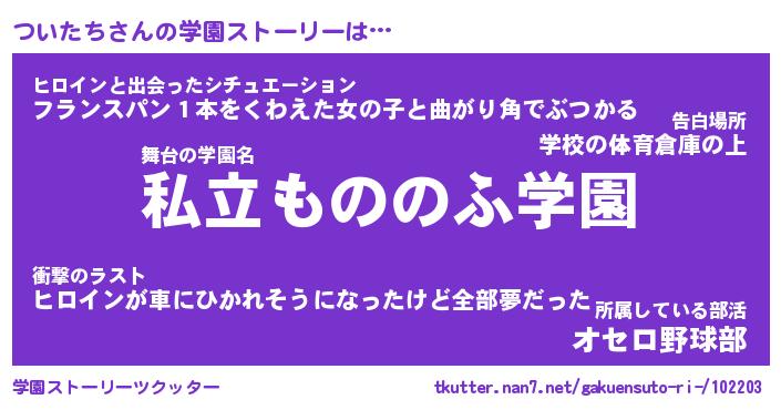 | 男性向けラノベタイトル風あだ名 | 『ついたちの憂鬱』 |