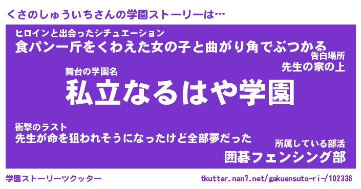 | 男性向けラノベタイトル風あだ名 | 『くさのしゅういちの憂鬱』 |