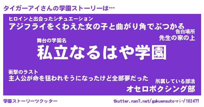 | 女子向けラノベタイトル風あだ名 | 『(仮)タイガーアイのやんごとなき事情』 |