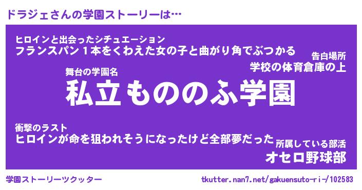 | 男性向けラノベタイトル風あだ名 | 『ドラジェの憂鬱』 |