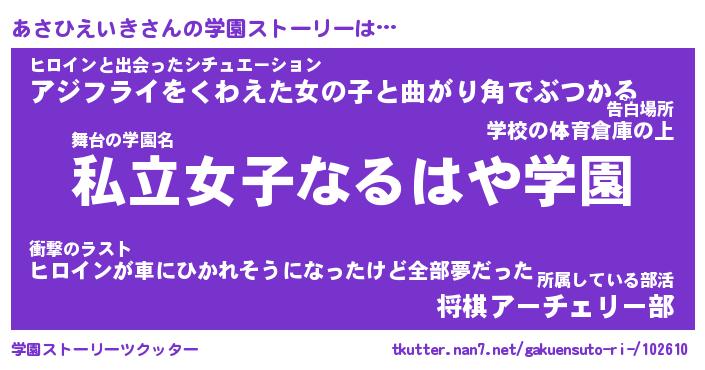 | ヒーロー風カッコイイあだ名 | 『スーパーアサヒエイキ』『天弓騎士アサ』 |