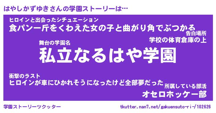 | 伝説のあだ名 | 『伝説のスナイパーはやしかずゆき』 |