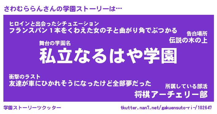 | 男性向けラノベタイトル風あだ名 | 『さわむららんの憂鬱』 |