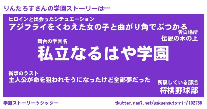 | 男性向けラノベタイトル風あだ名 | 『りんたろすの憂鬱』 |
