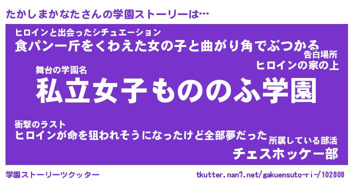 | 先生 | たかしまかなた先生が勤める学校名『町立もふもふ中学校』 |