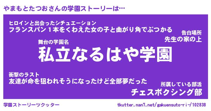 | 女子向けラノベタイトル風あだ名 | 『(仮)やまもとたつおのやんごとなき事情』 |