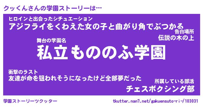 | 男性向けラノベタイトル風あだ名 | 『クッくんの憂鬱』 |