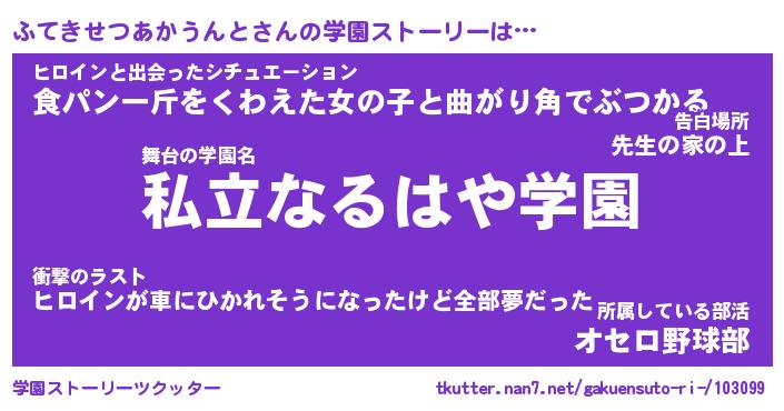 | 先生 | ふてきせつあかうんと先生が勤める学校名『私立ささくれ高校』 |