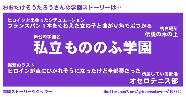| 女子向けラノベタイトル風あだ名 | 『おおたけそうたろう姫と円卓の騎士』 |