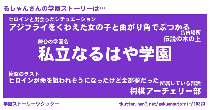 | 男性向けラノベタイトル風あだ名 | 『るしゃんの憂鬱』 |