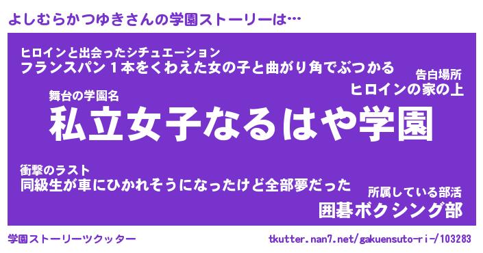 | 女子向けラノベタイトル風あだ名 | 『よしむらかつゆき姫と円卓の騎士』 |
