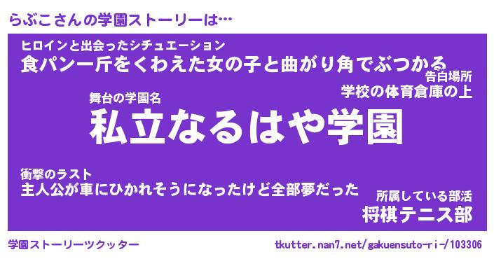 | 伝説のあだ名 | 『伝説のスナイパーらぶこ』 |
