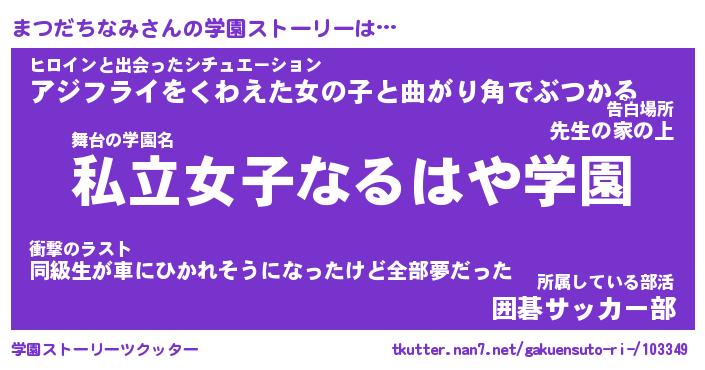 | 胡散臭い通販商品みたいなあだ名 | 『モテモテ間違いなし霊験あらたかなお札…その名も「まつだちなみ」』 |