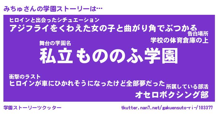 | 男性向けラノベタイトル風あだ名 | 『みちゅの憂鬱』 |