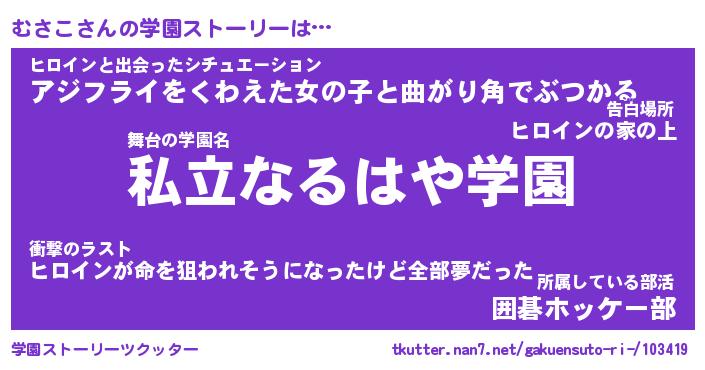 | 告白場所 先生の家の上 …「ふぃぎゅこ」 | 2月17日 06:24 |