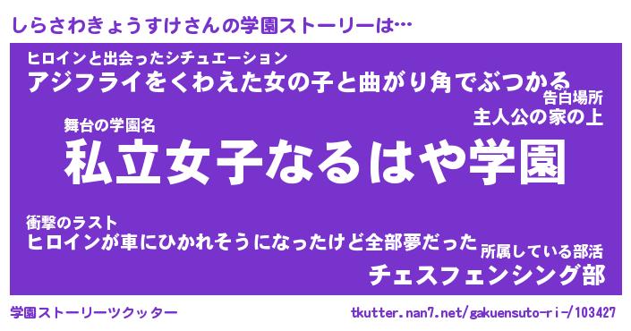 | 女子向けラノベタイトル風あだ名 | 『しらさわきょうすけ姫と円卓の騎士』 |