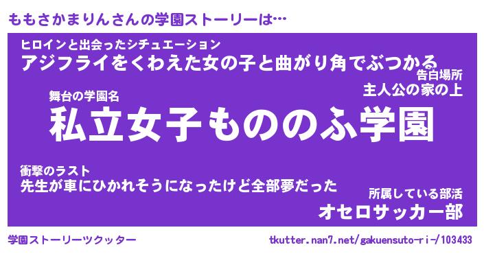 | 女子向けラノベタイトル風あだ名 | 『誰かこのももさかまりんを説明してください! ~契約から始まるウェディング~』 |