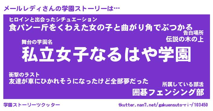 | 女子向けラノベタイトル風あだ名 | 『誰かこのメールレディを説明してください! ~契約から始まるウェディング~』 |